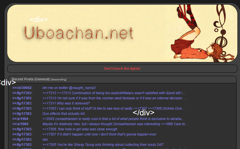 - Uboachan: Effectively translates to “The Uboa Imageboard.”