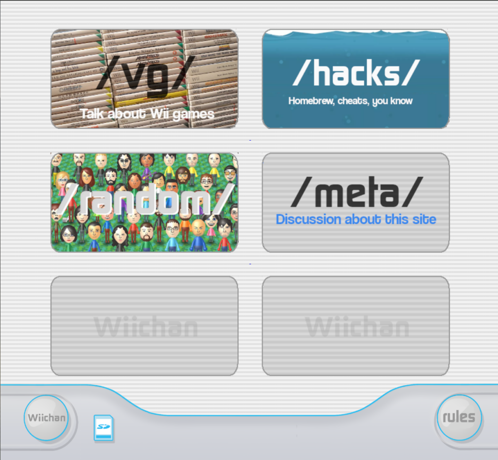 .mxtop-level domain indicates the creator is based in Mexico. Theuwupart is a reference to the popular “uwu” emoticon (representing a cute or “happy” face), common in anime and internet subcultures. - Wiichan: Effectively translates to “The Wii Imageboard.”