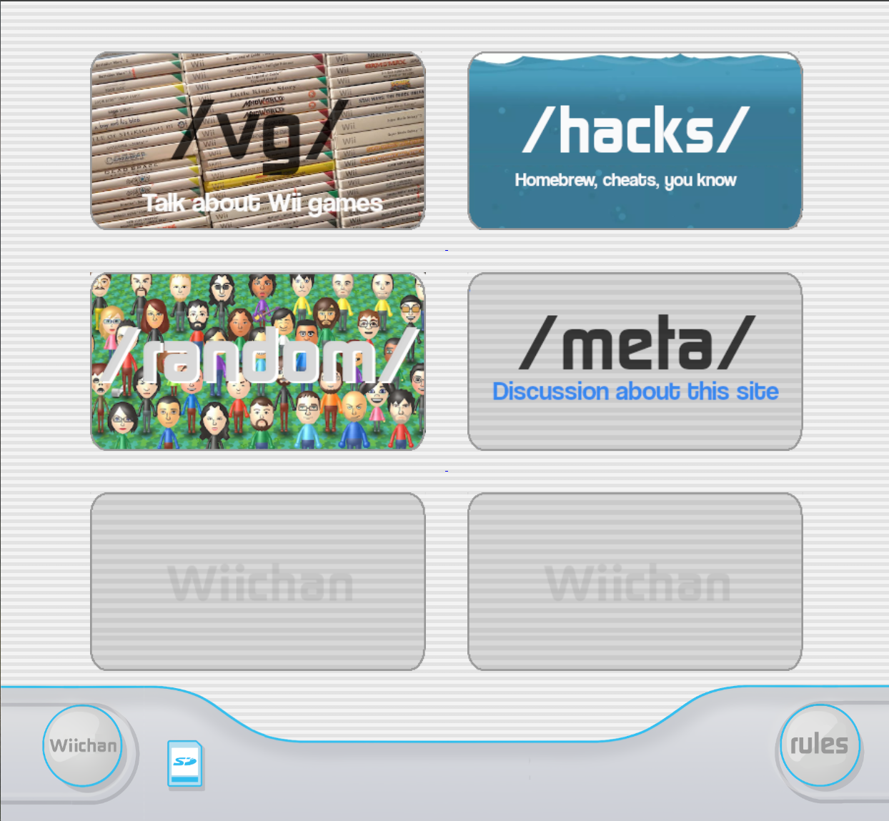 Wiichan (specifically the instance at no.wiichan.uwu.mx) is a unique community project that serves as a tribute to the Nintendo Wii. It is famous in niche circles for its technical novelty: it is hosted on an actual, physical Nintendo Wii console. Currently, 1-2026, posting throws an error and it seems there is no new content since ~2020.