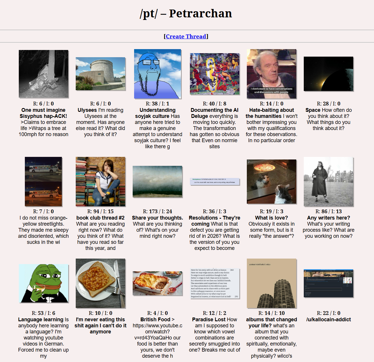 - Petrarchan: Effectively translates to “The Humanist Imageboard.” It signals to potential users that the site values artistic and intellectual pursuits over the “trash” aesthetic of other boards.