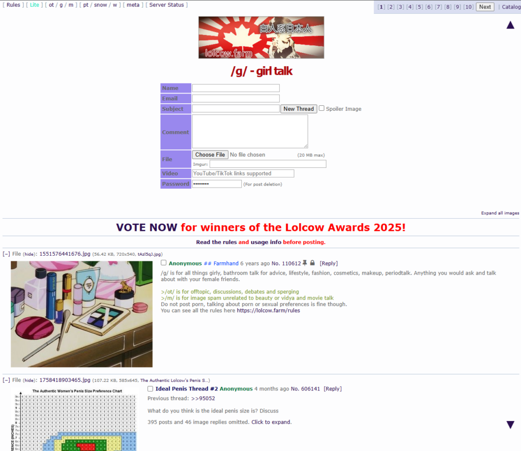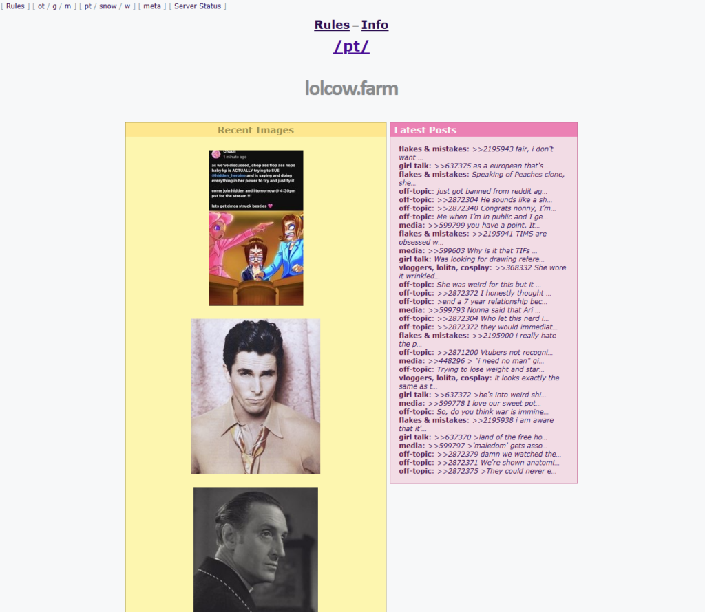 Post author:All Chans Post published:January 24, 2026 Post category:Image Boards Post comments:0 Comments Tags: lolcow, lolcow.farm You Might Also Like Male General January 24, 2026 TVChan January 11, 2026 Tohno-chan January 12, 2026 Leave a Reply Cancel replyCommentEnter your name or username to comment Enter your email address to comment Enter your website URL (optional) Save my name, email, and website in this browser for the next time I comment. Attachment The maximum upload file size: 3 MB. You can upload: image. Links to YouTube, Facebook, Twitter and other services inserted in the comment text will be automatically embedded. Drop file here Δ