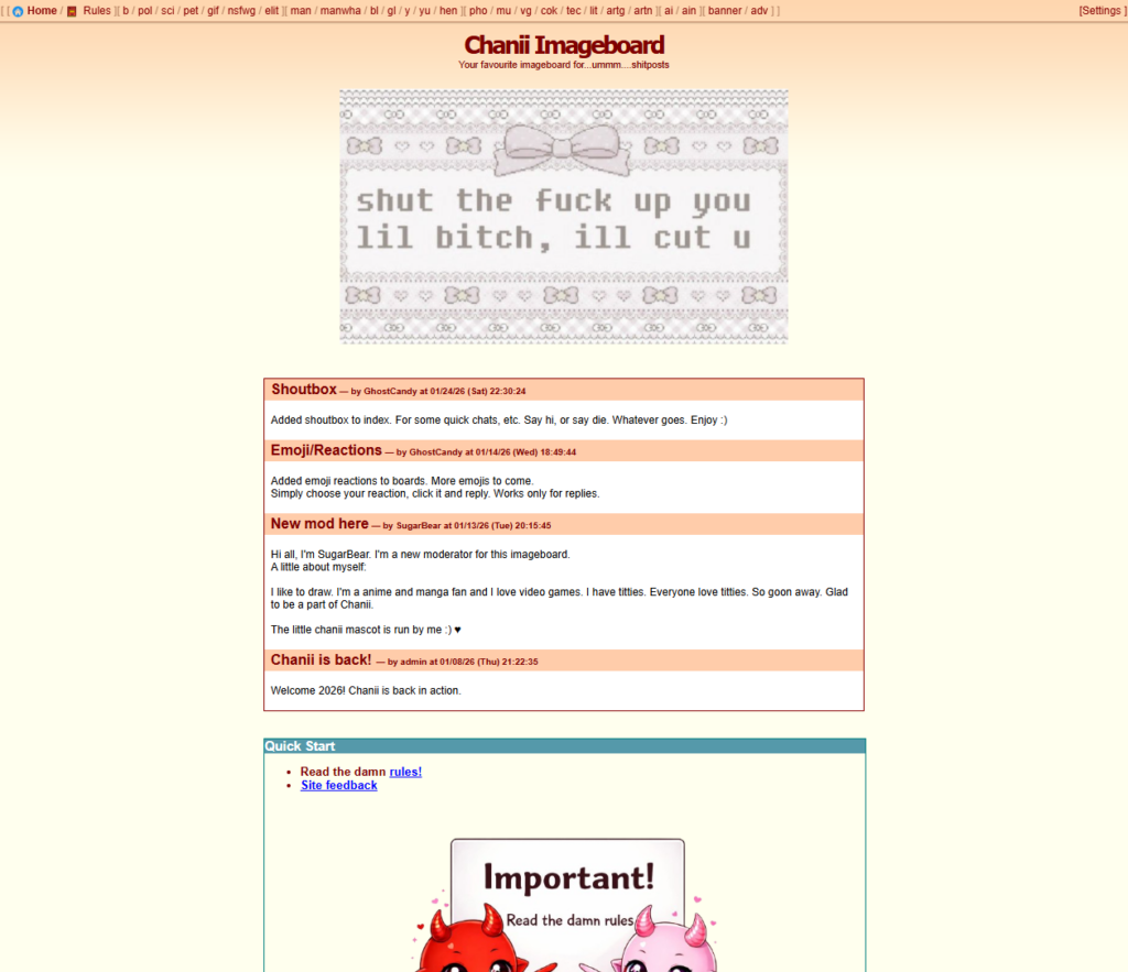 Chanii was created to revive imageboard culture but keeping a modern vibe in mind. A nostalgic Internet feeling yet keeping modern standards.