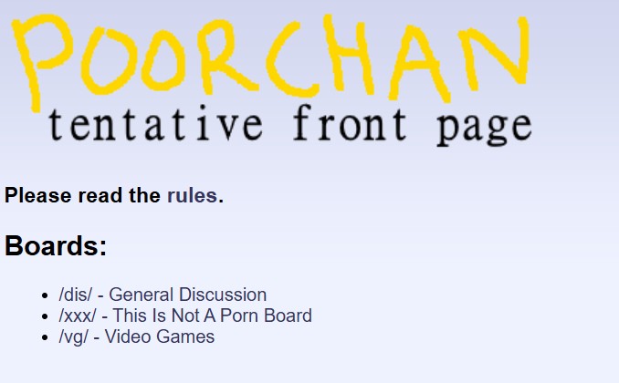 Poorchan was established in december 2025 and has three boards: